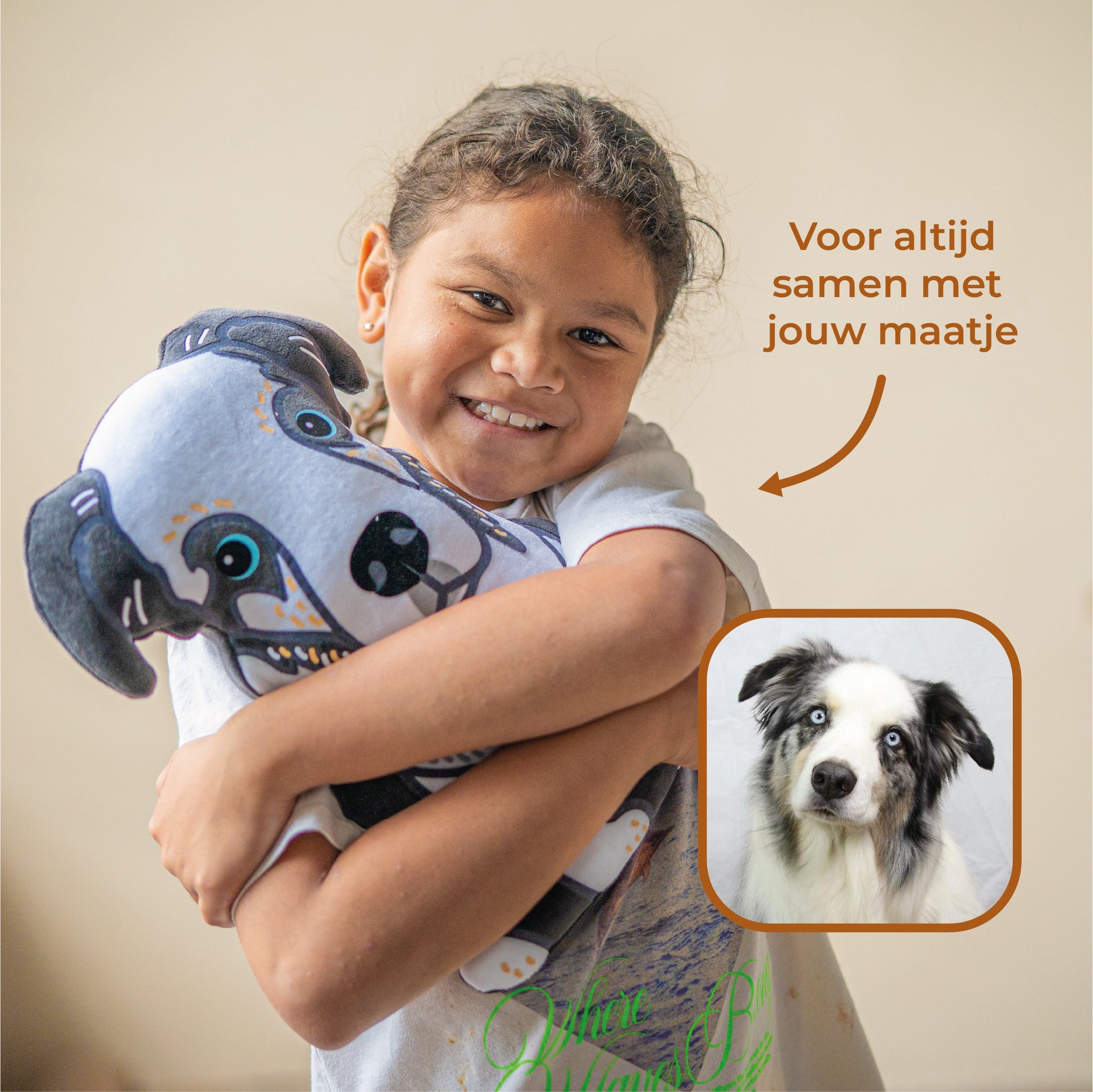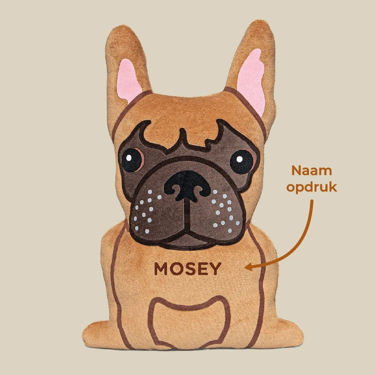 Hoe het werkt: Ieder ontwerp is uniek handwerk waarbij we de kenmerkende blik van je maatje proberen te vangen. Je ontvangt binnen 1-2 werkdagen een digitaal ontwerp ter goedkeuring; pas als jij helemaal blij bent, maken we de knuffel met de hand voor je klaar.